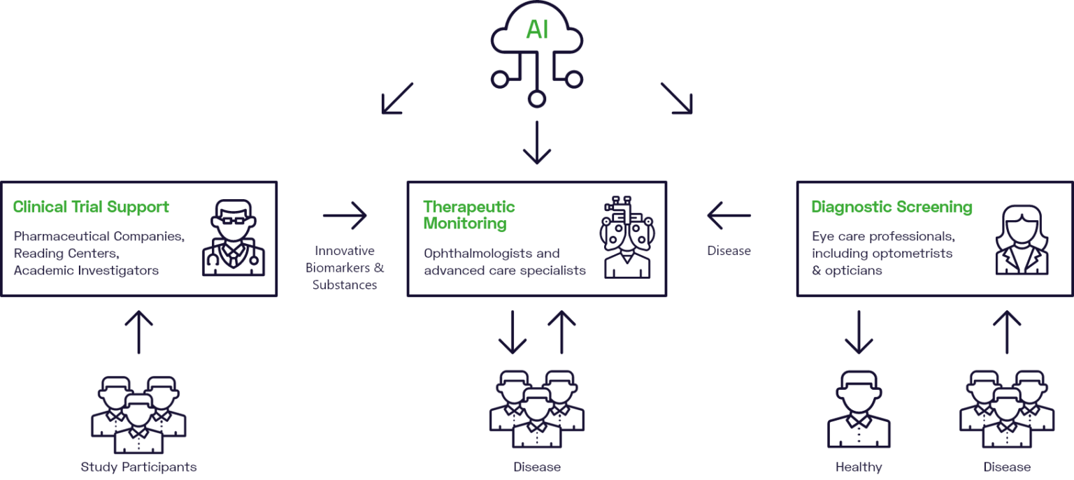 RetInSightoffer AI-assisted analysis tools for Optical Coherence Tomography (OCT) images and other multi-modal examination methods from prospective and retrospective that target clinical and scientific studies as well as clinical routines.